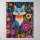 Vibrant Fox Dot Art Amidst Lush Flora Poster