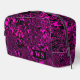 Make your travels stand out with this eye-catching vibrant fuchsia toiletry bag, featuring a bold abstract leaves pattern and custom monogram initials on the front.