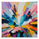 A dynamic burst of colourful geometric shapes radiating from the centre, creating a striking modern design. The bold brushstrokes and vivid tones give this piece an energetic and artistic feel, perfect for statement decor and fashion.
