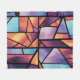 A stunning and vibrant piece of geometric stained glass art featuring an array of intersecting shapes and rich hues of purple, blue, and orange. The intricate design and dynamic colour palette create a mesmerising visual experience, perfect for adding a touch of modern elegance to any space.