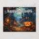 Vibrant Glowing Spooky Pumpkin Happy Halloween Postcard