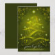 Holiday Card | Add family name - Vibrant Gold Green Abstract Christmas Horses - a Christmas tree created with horse profiles snowflakes and twinkle stars on a gradient Vibrant Gold Green - peace hope love in modern hand drawn calligraphy - design WhimsicalArtwork™