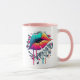 This image features a detailed, graffiti-inspired illustration of lips. The artwork showcases an explosion of colours, with blue and orange hues dominating the palette. The design is complemented by paint drips and graphic splatters, creating a dynamic and urban aesthetic.