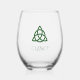 Vibrant Green Celtic Trinity Knot Family Name Stemless Wine Glass