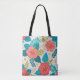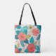 Add a burst of color to your day with this vibrant hibiscus floral tote bag. Featuring bold pink hibiscus flowers paired with rich teal leaves and golden accents, this design brings a tropical touch to any outfit. Perfect for beach days, picnics, or daily errands, this tote combines style and functionality. With its cheerful floral arrangement, this bag will brighten up your accessories collection while offering ample space for your essentials.