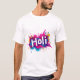 Celebrate the Festival of Colours with this stunning, high-energy design. Featuring a bold "Holi" script set against an explosive burst of electric blue, magenta, and fiery orange powders, this tee captures the spirit of joy and renewal. Perfect for Holi parties, community events, or adding a pop of artistic flair to your everyday wardrobe.