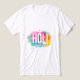 Celebrate the Festival of Colours with this stunning, high-energy design. Featuring a bold "Holi" script set against an explosive burst of electric blue, magenta, and fiery orange powders, this tee captures the spirit of joy and renewal. Perfect for Holi parties, community events, or adding a pop of artistic flair to your everyday wardrobe.