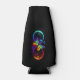 Vibrant infinity with rainbow butterfly on black bottle cooler