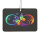 Vibrant infinity with rainbow butterfly on black car air freshener