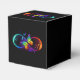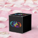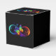 Vibrant infinity with rainbow butterfly on black favour box