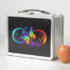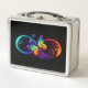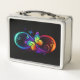 Vibrant infinity with rainbow butterfly on black metal lunch box