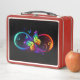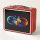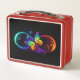 Vibrant infinity with rainbow butterfly on black metal lunch box