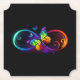 Vibrant infinity with rainbow butterfly on black paper coaster