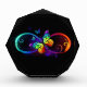 Vibrant infinity with rainbow butterfly on black photo block