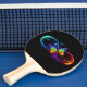 Vibrant infinity with rainbow butterfly on black ping pong paddle