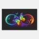 Vibrant infinity with rainbow butterfly on black rectangular sticker