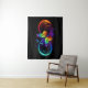 Vibrant infinity with rainbow butterfly on black tapestry