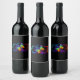 Vibrant infinity with rainbow butterfly on black wine label