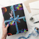 Vibrant infinity with rainbow butterfly on black wrapping paper