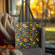 This Khokhloma-inspired tote bag showcases a vibrant and intricate floral pattern in rich red, yellow, and green hues against a deep black background. Perfect for anyone who appreciates traditional Russian folk art with a modern twist. The design is both stylish and culturally significant, making it a great accessory for adding a splash of colour to your everyday outfit. Ideal for those who love unique and artistic fashion statements.