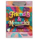 This vibrant artwork captures the essence of friendship through its multi-coloured text "Friends & Memories," elegantly adorned with a touch of gold. Set against a textured background, the image radiates warmth and joy, inviting viewers to reflect on the special bonds and unforgettable moments shared with loved ones. "Original Image was generated by Meta AI. AI generated artwork. Licensed under CC BY-SA 4.0.