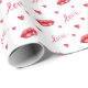a pattern featuring the word "love" written in a cursive style, red lips, and red hearts. These elements are repeated across the image, creating a romantic and affectionate theme. The background is white, which makes the red elements stand out prominently.