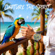 A colourful watch featuring a macaw parrot illustrated in a stained glass pattern, perched on a branch amidst tropical leaves. The artwork evokes a cheerful ambiance, perfect for vibrant style.