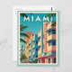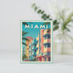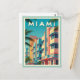 Colourful illustration of iconic Miami architecture featuring geometric patterns, pastel colours, and lush palm fronds casting shadows.