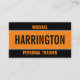 Vibrant Modern Orange and Black Personal Trainer B Business Card