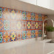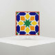 Add Mediterranean flair with this vibrant Moroccan ceramic tile in bold blue, yellow, orange, and green. Ideal for kitchen backsplash, accent wall, or decorative home art.