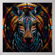 Step into a world of colour and creativity with this stunning mosaic-style zebra artwork. This captivating design showcases a zebra's face composed of vivid geometric shapes, creating a lively and intricate pattern. Dominant hues of blue, red, orange, and yellow blend seamlessly to highlight the zebra's striking stripes and expressive eyes. The background features a circular, stained-glass inspired design, adding to the overall vibrancy and uniqueness of the piece. Perfect for art lovers and wildlife enthusiasts, this exceptional artwork is ideal for prints, posters, and various home décor items, bringing a touch of exotic charm and boldness to any space.