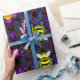 Vibrant Neon Honeybee with Abstract Hexagonal Wrapping Paper