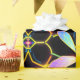 Vibrant Neon Honeybee with Abstract Hexagonal Wrapping Paper