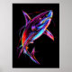 Vibrant Neon Shark Modern Digital Ocean Poster