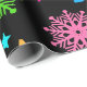 This eye-catching pattern features colourful snowflakes and stars on a black background. Perfect for adding a bold and modern touch to your projects.