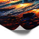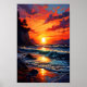 Immerse yourself in the beauty of this AI-generated sunset art poster print, where fiery reds, oranges, and deep blues blend seamlessly across a coastal landscape. This captivating piece showcases the serenity of waves crashing against the shoreline as the sun dips below the horizon, creating a warm and tranquil atmosphere. Perfect for enhancing any living room, office, or bedroom space, this vivid seascape print evokes the peace and beauty of nature, making it an ideal gift or home decor piece. This artwork offers a fresh perspective on nature's most mesmerising moment. Its unique composition and colour palette bring depth to the art, making it stand out among other coastal prints. Whether you're seeking decor for a beach house, adding to an art collection, or searching for a gift for nature lovers, this sunset print will leave a lasting impression. Perfect for celebrating events like birthdays, anniversaries, housewarming parties, or simply brightening up any space.