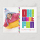 A vibrant Christmas photo postcard card design featuring a diagonal striped accent, a photo placeholder and the words "Oh! What Fun" bold retro modern typography style.