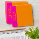 Disco vibes make a splash in the mailbox with this vibrant orange and hot pink envelope personalised with your monogram on the front and return address on the back flap. Bright and Colourful.