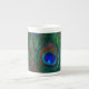 Vibrant Peacock Feathers Etching Style Decor Bone China Mug