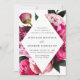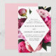 Elegant floral wedding invitations featuring your wedding details inside of a diamond frame surrounded by beautiful vivid pink and blush pink peonies with lush green leaves. The peony wedding invitations reverse to a light pink background with space for additional text and images.
