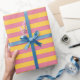 Vibrant Pink and Yellow Vertical Striped Pattern Wrapping Paper