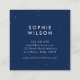 Vibrant square business card featuring thick marker strokes in pink, purple and orange with tiny splashes of pink and orange on top of it on the front. Card has a blue back side with tiny splashes or pink and orange. This colourful business card is ideal for various professions like interior designer, event planner, consultant, writer, stylist, etc.