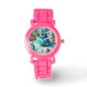 A vibrant pink watch featuring a playful cartoon character, perfect for adding fun to any outfit.
