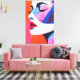 A striking pop art portrait of a woman, featuring bold colours and dynamic compositions. Perfect for modern wall decor.