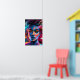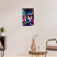 Striking psychedelic portrait of a beautiful woman with glowing neon skin, swirling colorful hair, intense golden eyes, and bold lips. Vibrant blues, pinks, purples, and yellows create a trippy, modern abstract effect. Perfect for bold wall art, bedroom decor, or contemporary home styling.
