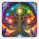 Vibrant Rainbow Celtic Tree with Wolves and Raven Square Sticker