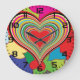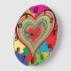Keep track of time with this stylish wall clock featuring the bold rainbow layered heart graphic. The psychedelic colors and concentric pattern turn time-telling into an artistic experience. This clock provides a vibrant multi-color focal point and modern graphic appeal, making it a functional piece of pop art style decor.