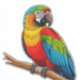 A vivid parrot sits on a branch, showcasing bright red chest, green wings, and blue tail. This lively illustration evokes tropical wildlife, nature, and bold colour for versatile stock usage.
