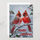 Vibrant Red Cardinals on a Snowy Branch Holiday Card