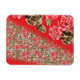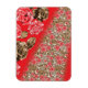 Vibrant red fabric featuring intricate floral and magnet
